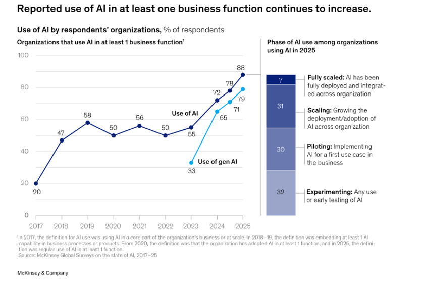 A recent survey from McKinsey found that the majority of US companies have now begun to embrace AI in their operations.