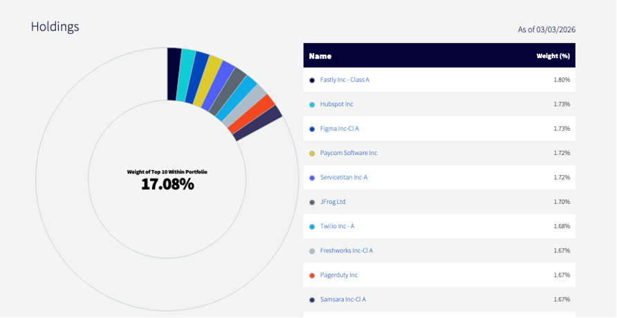The WisdomTree Cloud Computing ETF is a heavily diversified ETF that primarily focuses on US cloud computing companies. This ETF targets 68 leading companies in the industry.