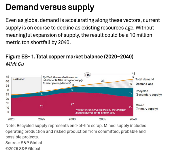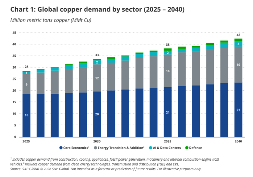 SP Global recently noted that there would be a strong deficit in the copper market by 2040 if supply does not pick up to meet the projected demand.
