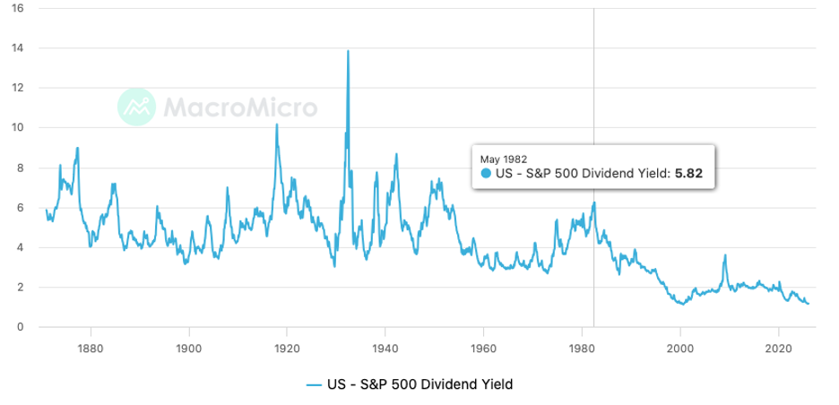 The dividend yield of the S&P 500 was nearly 6% in 1982!